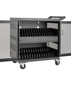 Carro Estación de Carga USB para 32 Dispositivos con Sincronización para Tabletas iPad y Android, Opción para Instalación en Pared, Negro